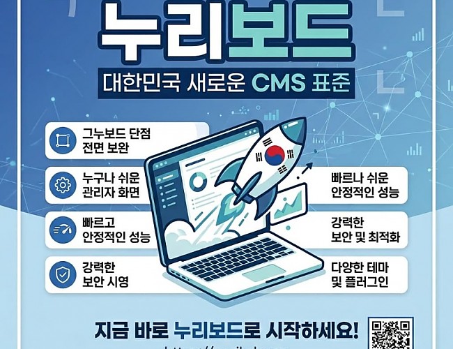 누리보드가 워드프레스나 , 국내 1위인 그누보드처럼 유명해질 순 없겠지만